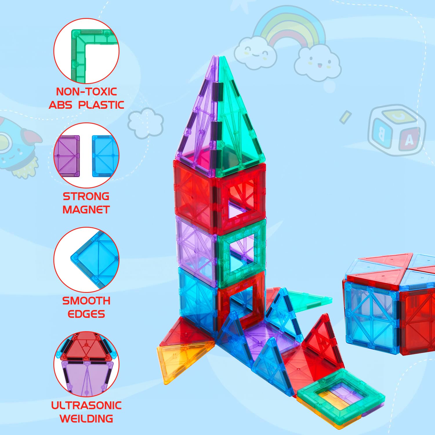 चुंबकीय डिजाइन के कारण निर्माण और विखंडन आसान हो जाता है, जिससे बच्चों के लिए अपने स्वयं के डिजाइन बनाना सरल हो जाता है, तथा सफाई और भंडारण भी आसान हो जाता है।